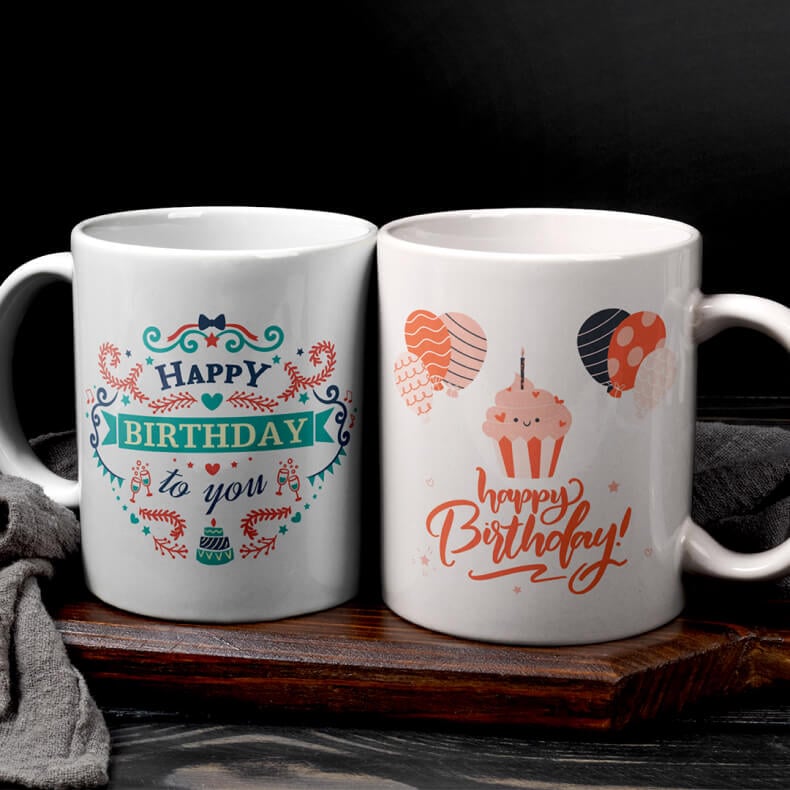 Personalized mugs printed with photos, logos, or custom designs. High-quality printing ensures vibrant colors and long-lasting use.